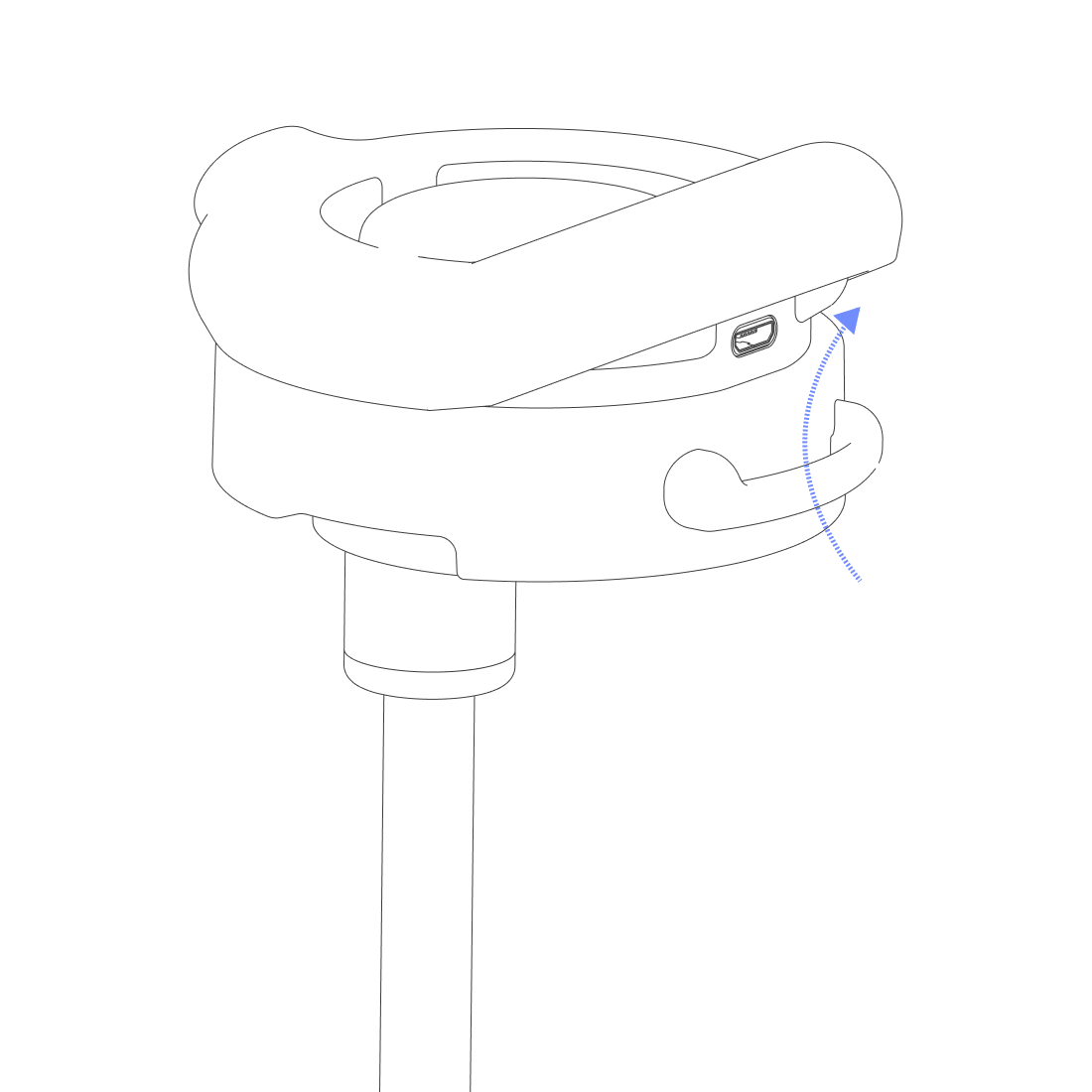 Place your thumb directly above the handle and push up on the bumper to expose the charging port. Plug the USB into any wall charger or laptop USB socket. Wait until the light turns green to indicate charging is complete.